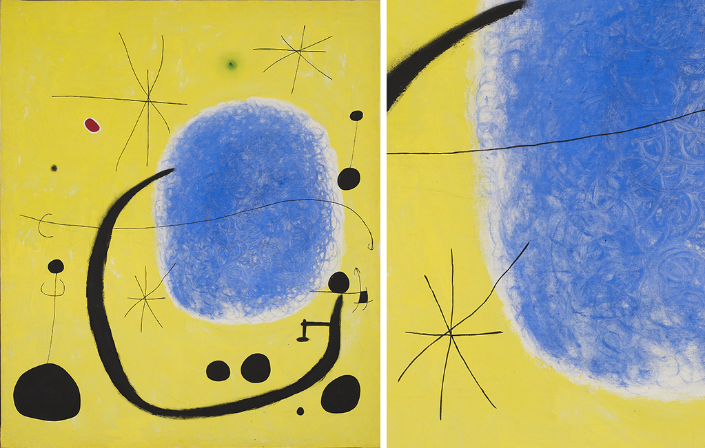 Bleu II/II (Blue II/II), 1961. Oil on canvas, 270 × 355 cm. Musée National D’Art Moderne. Center Georges Pompidou, Paris. © Successió Miró Archive.