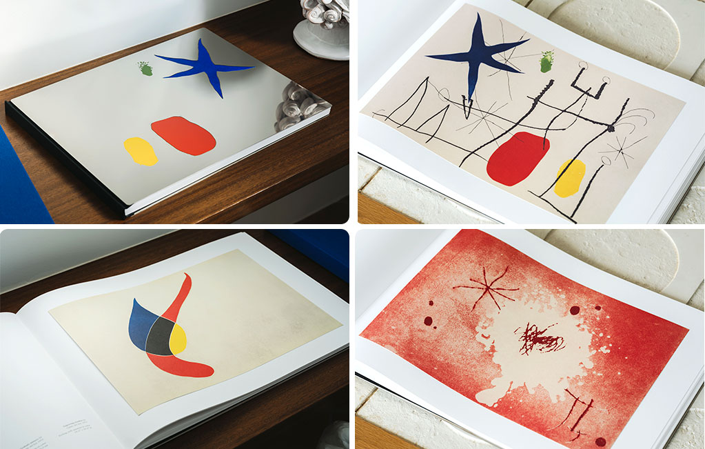 The Art Book brings together 33 engravings by Miró, reproduced with great fidelity, respecting the reliefs and the acid and ink imperfections of the originals. The front and back covers, which reproduce plates 10 and 4, offer a visual preview of the creative universe the artist unfolds throughout the series.