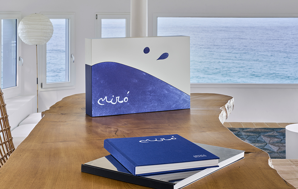 The two volumes are presented in an emblematic case that recreates engraving number 20 from the collection. Elegant and rich in symbolism, the case is inspired by the form of one of the recurring elements in the artist’s work: water. The piece is completed with Miró’s signature, an element that adds character and turns it into a unique and distinctive object.