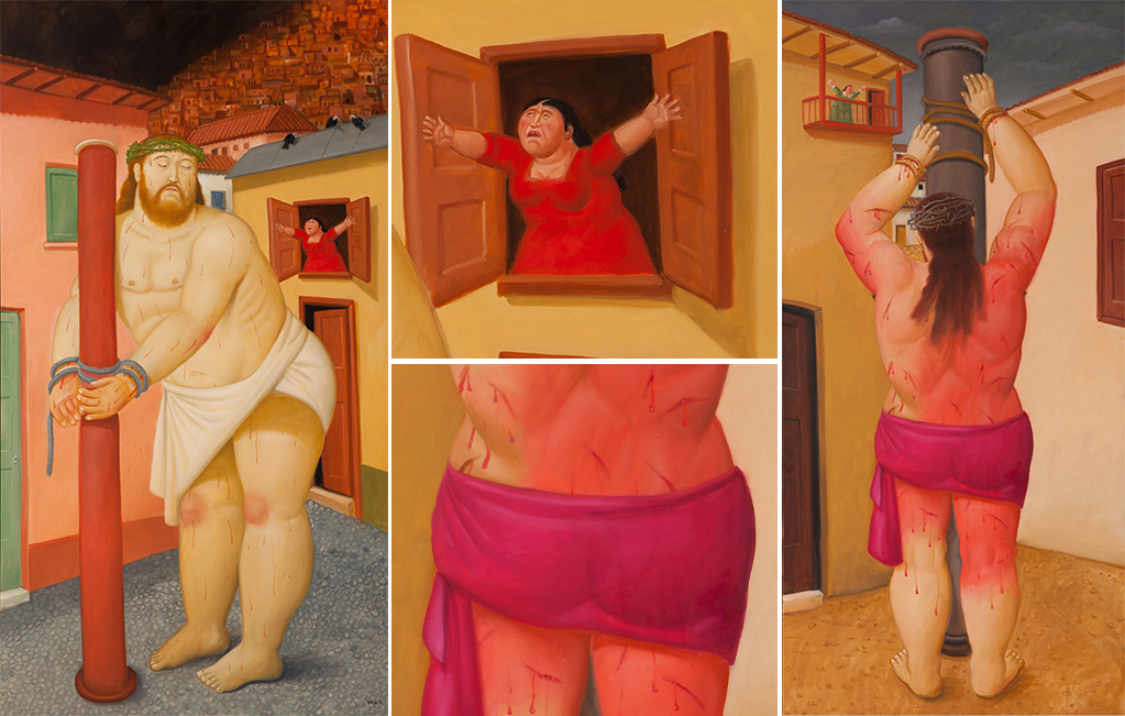 Details of various works by Botero in Via Crucis.
