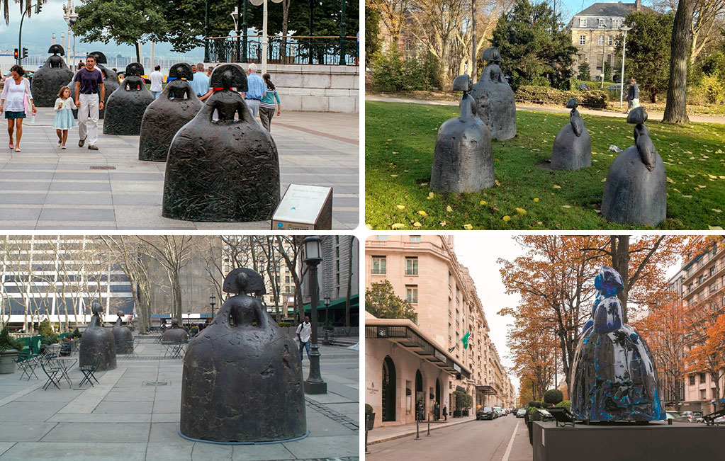 Often, the final stage in the journey of Valdés’s meninas is their release into the real world, a decision that redefines the relationship between the artwork and the public. The artist does not limit his creations to museum spaces; instead, he installs them in plazas, avenues, and gardens in cities like New York, Paris, Madrid, Düsseldorf, Venice, or Santander, where they engage with the architecture, light, and urban flow. With their monumental presence, the silhouettes gain new dimension when outdoors, as silent presences that respect the dynamics of the landscape while simultaneously enhancing its beauty. Far from being confined to the past, they integrate into the contemporary rhythm.