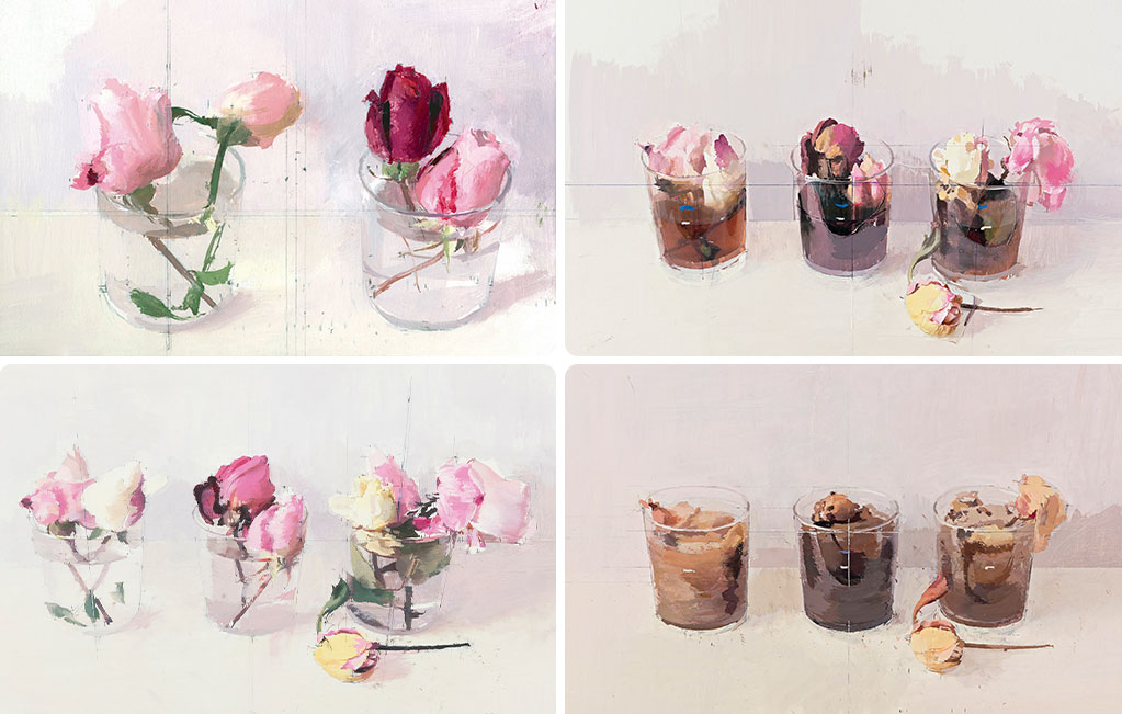 Izq. sup. Rosas de invierno, 2015. Óleo sobre lienzo, 24 × 33 cm.