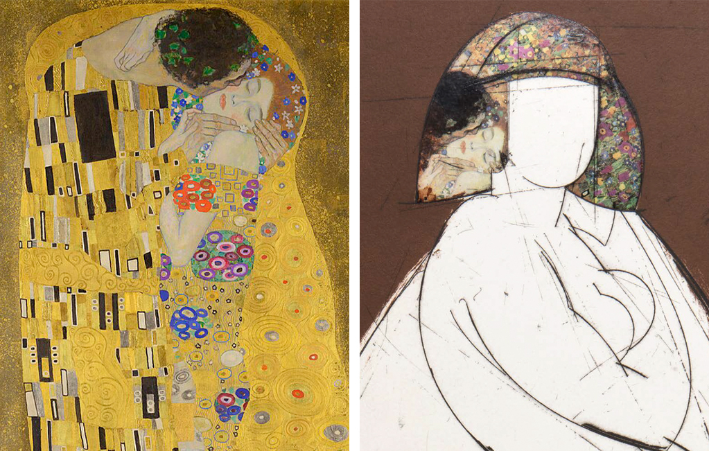 Dcha.: Helène VI (detalle), 2005. Grabado y collage, 167 × 96 cm. Ed. 50. Coedición ARTIKA-Manolo Valdés